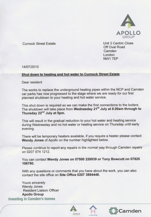 The following letter was sent to the residents of the Curnock Estate. The letter is about the Shut down to heating and hot water to Curnock Street Estate. To view the original document click here.
