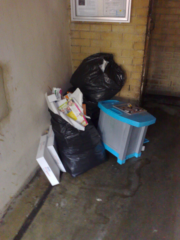 Between 10:15 and 11:00am another visitor of the Goldthorpe Building, vomited outside our doors. Now, we have two vomits, 4 empty bottles, a sticky floor, plenty of rubbish (See photo) and a "nice autumn" smell full or flies.